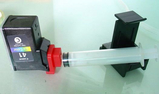 首先用胶在接头处密封,然后想办法排除墨盒内的空气。
