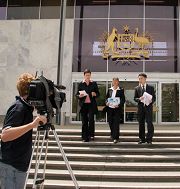 十四日上午十点左右,法轮功学员状告外长唐纳的诉讼案在堪培拉高等法院由法官Ken Crispin宣布最后裁决书。法庭表示被告唐纳允诺不再签发证书,他从今年三月十一日停签了限制法轮功学员使用横幅和扩音器的证书,并在十一月一日向法庭递交了一份保证书,表示不会再签发内容一样的证书。法官认为这份保证书在执行上应该和强制令具有同样的效力,唐纳的承诺比法庭发出强制令命令唐纳不得签署证书限制法轮功在堪培拉中国大使馆前的和平抗议活动要好,法轮功现在可以不受限制的、自由表达自己对中共违反人权的抗议,因此法庭判决:被告唐纳支付原告法轮功所有的诉讼费两万澳元,本诉讼案完结。