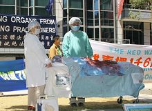 ![]() 集会现场模拟中共活体器官售卖展示 |