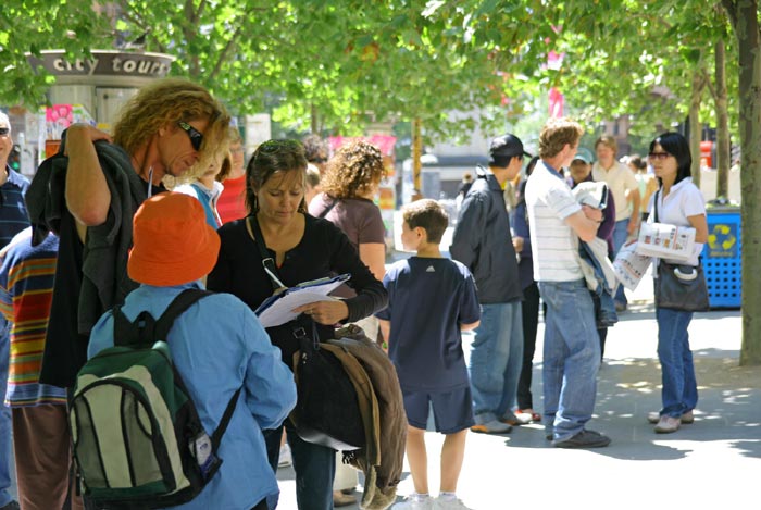 圣诞前夕,到澳洲旅游度假的大陆游客特别多。在集会现场,记者看到,有一新疆来的游客,刚到第二天,看到报纸广告就赶过来要求退党。这位先生激动地说,我在国内是国家公务员,可是我对共产党的所作所为是深恶痛绝,它的历史都是伪造的,从来都在危害中国人民,中共是最大的卖国贼。谁愿意和它为伍啊?我早就想退党了,可是都被以下岗相威胁,如果不是还要回去,我真想用真名退了它。还有不少大陆游客,看到游行队伍浩浩荡荡走过来,一边说“来了!来了!”一边赶快用摄像机留下珍贵历史见证。