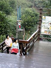 在爬过约半小时的山林青石板路后,记者气喘吁吁的跟着这群脸不红、气不喘,甚至于在林间小径与登山游人擦身交错时,还能音声如磬的微笑递给山友法轮功文宣的亲子学员,一步一步的“喘抵”桐花公园看台广场,只见大家很有默契的拿出简单的坐垫,放出悠扬如天籁的炼功音乐,在庄严清净的气氛中,大家开始炼功了。