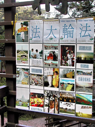 看着他们一张张晶莹剔透的小孩粉脸,却稳健自然的端坐如山,那种自在如意的气质真是令人惊异与心折,让我们不知不觉的想要多捕捉这难得的镜头,活蹦乱跳不懂事的小孩在这里展现的是纯净与庄严,仿佛从生命的本质将孩子提升上来了一般,回头看看展板上一张写着“高德大法引迷途”的照片,心想百闻不如一见,法轮功洪传世界八十余国,在中共打压、造谣的情况下还有这么多人坚定的学炼,这可不是没有道理的。