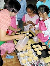 不一会儿扑鼻的香味传来,原来是第一批的蛋塔烤好了,就在大家其乐融融的分享这些由亲子协力做好的点心后,在大家笑意盈盈的脸庞中,结束了本次由树林明慧学校在社区间所例行举办的,给所有刚刚学炼法轮大法的新学员,带来的这一场欢喜又丰富的学习之旅。