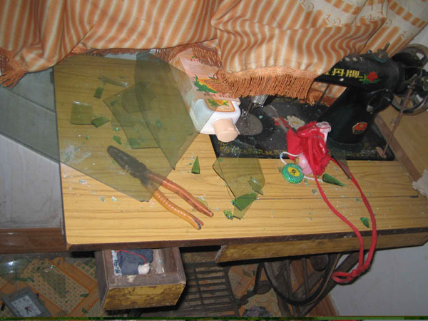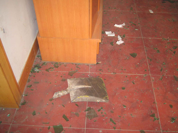 随后,他们打开大门,一拥而上,把屋里屋外所有门窗、家具上的玻璃和部份家用电器,全部摧毁。突如其来的击打声、玻璃碎落声和狗叫声嘈杂在一起,惊动了十几名邻里乡亲围观。