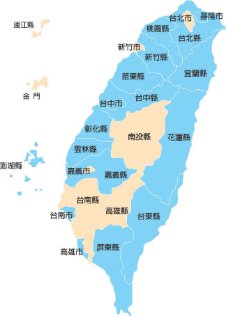 ![]() 图中蓝色部份为已通过谴责中共暴行决议的台湾县市 |