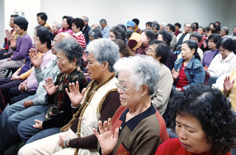 ![]() 二零零六年法轮大法台湾修炼心得交流会,副厅闽南语班阿公阿嬷们 |