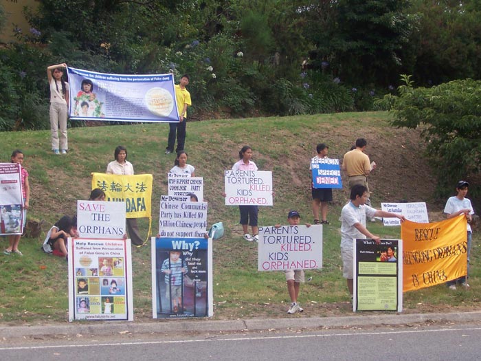 星期五一早车旅直接来到唐纳外长在阿德莱德市郊的选区办公室,希望递交一封公开信给他,在前一天晚上起草的给唐纳外长的信中,法轮功学员们告诉唐纳先生车旅此行的经历和他签署证书的后果,就是他的证书也造成了更多的法轮功孤儿的不幸。希望唐纳能尽快停止每月签署证书。在他的选区办公室前,小弟子们手持着横幅表示抗议,如“父母被杀,孩子流浪”,“唐纳签字等于支持对法轮功的迫害”,“言论自由被制止”等等。