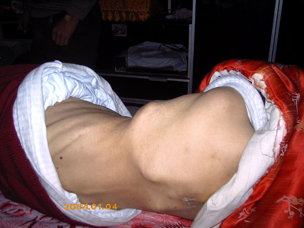 ![]() 保外就医后,回家时腰部的照片(注:相机日期没校对) |