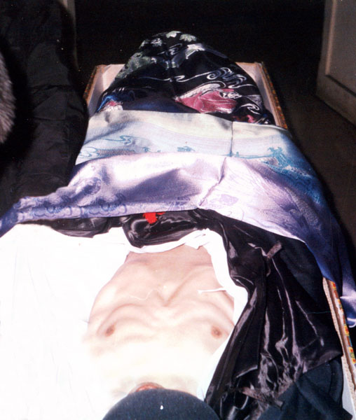 ![]() 保外回来腿部照片 | ![]() 杨晓杰去世后的胸部照片 |