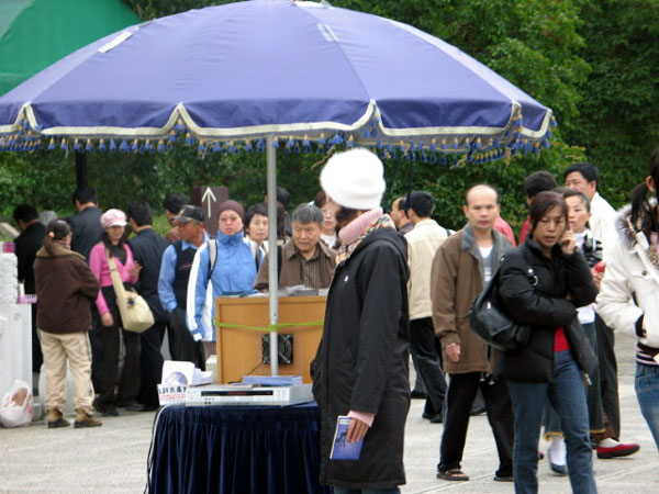 ![]() 大年初四的故宫──法轮功学员炼功 | ![]() 大陆观光客认真的看着真相展板 |