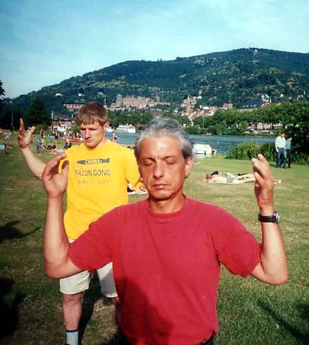 因为职业的缘故,按摩师胡伯特•科尔普(Hubert Koerper)一直倾心于中国文化,对气功更是充满了兴趣,他就是看了1997年“玄奥”杂志上发表的那篇文章而和一名家住附近的中国法轮功学员联系上的。胡伯特说:“这之后几个星期,在法兰克福和万海姆市(Weinheim)连续举办了两次德文九天讲法录像班,每次大概有三、四十人参加。当时还没有德语配音,一个中国学员同声翻译,因为很多名词德文中没有,所以一些内容我并没有听懂,但我还是感到,法轮功的‘真善忍’的道理非常好,这就是我想学的。”