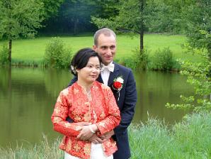 修炼法轮功也给米歇尔带来了他生命中的另一半,一提到他的妻子周女士,米歇尔的脸上就泛起了一个柔和的微笑。来自杭州的计算机工程师周女士也是一名法轮功学员,工作的地方离米歇尔的城市不远,他们经常在学法组、炼功点和法轮功活动上见面,逐渐由相知到相爱,在一年多以前两人喜结良缘。