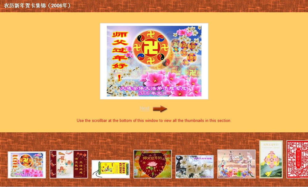 【明慧网二零零六年二月六日】这是2006年农历新年期间,中国大陆和海外的大法弟子为向法轮大法师尊恭祝新年而制作了大量的电子贺卡。这里仅收录其中的一小部份。