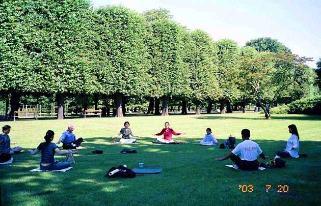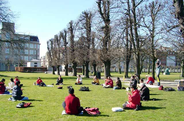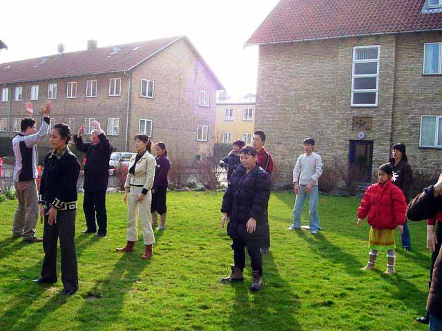 不久这位学员回到了丹麦,和瑞典学员一起,开办了丹麦第一个法轮大法九天班和炼功点。开始的那段日子里,曾经参加李洪志老师1995在瑞典哥德堡的讲法班的瑞典哥德堡学员斯万(Sven),不辞劳苦,每两周一次开车往返数百里到哥本哈根,来炼功点上教功和交流。从此,在哥本哈根风景优美的国王公园,人们经常看到有一群人在那里炼着一种优美祥和的功法——法轮功。他们中有70多岁的老人,也有几岁大的小孩。他们迎着初升的太阳,冒着冰雪严寒炼功,和大自然溶为一体。