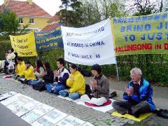 在中国的那场对法轮功的迫害发生后,他和其他法轮功学员一道,走到很多国家和地区,向人们讲述法轮功无辜被迫害的真相。他每天都精力充沛的骑着自行车去炼功点炼功。从2002年开始,他和别的学员一起每天1小时去中共大使馆前和平抗议对法轮功的迫害,风风雨雨走过了4个年头。他表示要一直坚持到迫害停止。