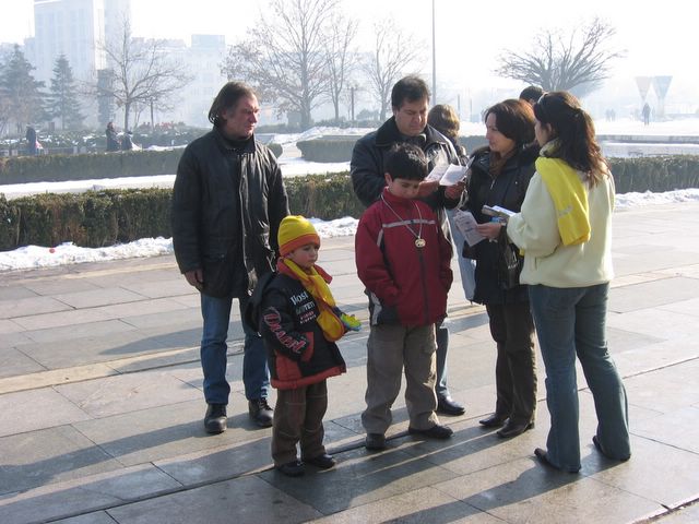 当听到这场迫害时,人们立刻就明白了,因为他们知道在许多年前,这些共产邪党惯用的手段也曾在保加利亚使用。学员们向人们详细的解释这场迫害是如何开始的,许多不肯放弃修炼法轮功的人是如何被中共投入劳教所、精神病院或监狱中遭受酷刑,以及约三千个经证实的迫害致死个案。