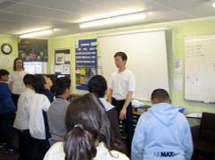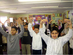 我本人及数位来自里兹和布雷德弗德(Bradford)的法轮功学员在二月十六日到了堤岸小学,教十到十一岁的三个班级法轮功功法。由于受限于场地大小,我们必须到各班级教功,因此每个班级仅有约三十分钟教功。我们决定最佳的方式是先播放由放光明电视台制作的名为“法轮功简介(Introduction to Falun Gong)”的法轮功录像带,之后的时间再教功。