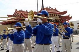 “天国乐团”,两个月前刚刚组建的军乐团,浩浩荡荡200名法轮功学员,鼓号齐鸣,震撼人心,叫人啧啧称奇。许多人想一探究竟。