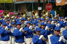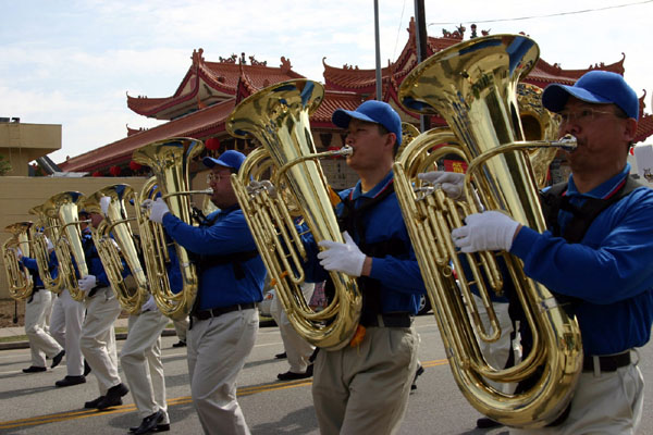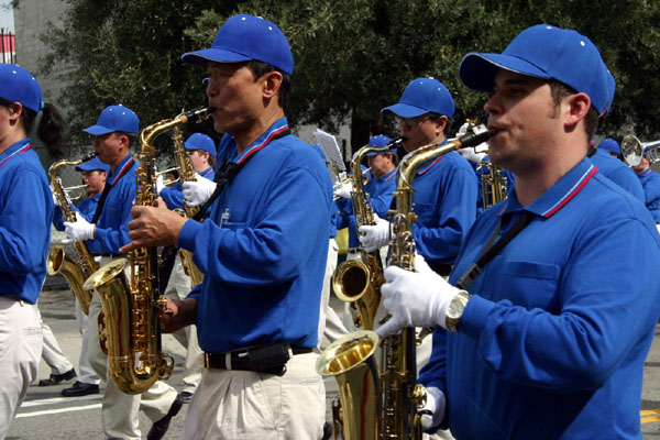 “天国乐团”团长,法轮功学员、男高音歌唱家关贵敏说:“我们的乐队已经两次参加纽约的社区游行,观众反应热烈,因为在海外,在华人中根本就没有过这么大的乐队。看到法轮功学员的军乐团表演,他们使劲的鼓掌,很多人都看呆了。”