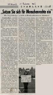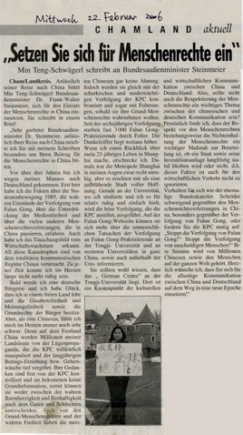卡姆时报摘录并刊登滕女士给外交部长的信件说,在外交部长即将访问中国之际,特此致信,恳请外交部长为中国的人权贡献力量。以下为卡姆时报刊登的部份信件内容: