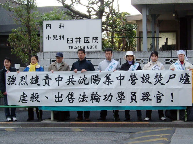 ![]() 日本法轮功学员在中共驻日使馆前抗议 |