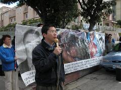 《中国事务杂志》主编伍凡对中共暴政有亲身经历,前几日他和其他社团人士在中领馆前加入全球接力绝食,抗议中共对大陆维权律师高智晟大施流氓黑帮手段,伍凡先生对中共政权的流氓特性有深入的研究。但他对中共在苏家屯死亡集中营迫害法轮功,出售被虐死的法轮功学员器官的兽行仍感到震惊。他说:“最近几天中国不停的有大事发生,迫使我们不得不在这些事情上表态,是你们(中共)做出这些没有人性的事使我们不得不再次来这里向你们抗议。”面对中领馆终日紧闭的门窗------它们从来没有认真听取民众的声音,伍凡先生继续他的演讲,“我们看到你们在苏家屯秘密集中营残害法轮功,兜售被虐杀者的人体器官,这是畜生干的事,我想问一句,你们还是人吗?你们比法西斯还法西斯!我祈求上苍和神严惩这些禽兽不如的人,它们应该得到惩罚,否则中国会完蛋!所有有良心的人都会为这件事感到震惊!------我们昨天给大陆的一位朋友通电话讲这件事,他非常震惊,他表示要去问要去调查。但是还是有人很麻木,如果大家对这种违背人伦的暴虐由其放任的话,会像当年纳粹把德国带上绝路一样毁掉中国,大家要知道只要中共政权存在一天,中共就在毁灭中国,就在毁灭世界!”他呼吁国际社会和西方国家再也不要象当年张伯伦纵容纳粹一样,豢养中共这个怪物,应该让怪物尽早灭亡,所有正义的人都应该站出来谴责中共。