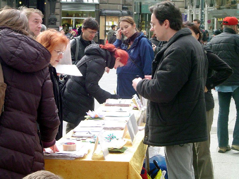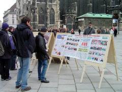 2006年3月11日,奥地利法轮功学员在维也纳市中心著名的商业区和旅游景点--史旦芬大教堂前举行活动,向全世界民众和当地民众揭露中共邪恶苏家屯集中营对法轮功学员的残酷暴行,曝光中共对法轮功学员的又一犯罪事实。