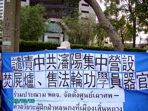 泰国法轮功学员表示,中共法西斯式秘密屠杀法轮功学员的恐怖暴行,天理不容,凡是有良知有正义感的人都应该予以谴责,共同制止中共的野蛮暴行。