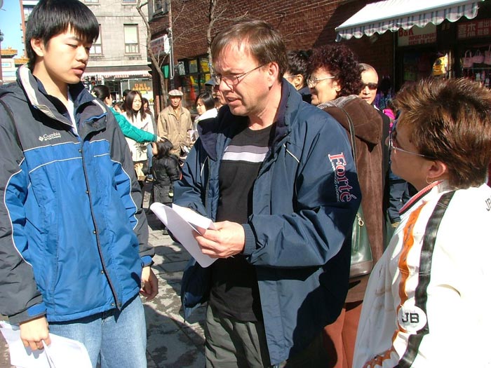 集会组织者准备了大量的就此事件的中、英、法文资料及征签表,过往的行人了解此事件后感到非常震惊,纷纷询问如何帮助法轮功学员。