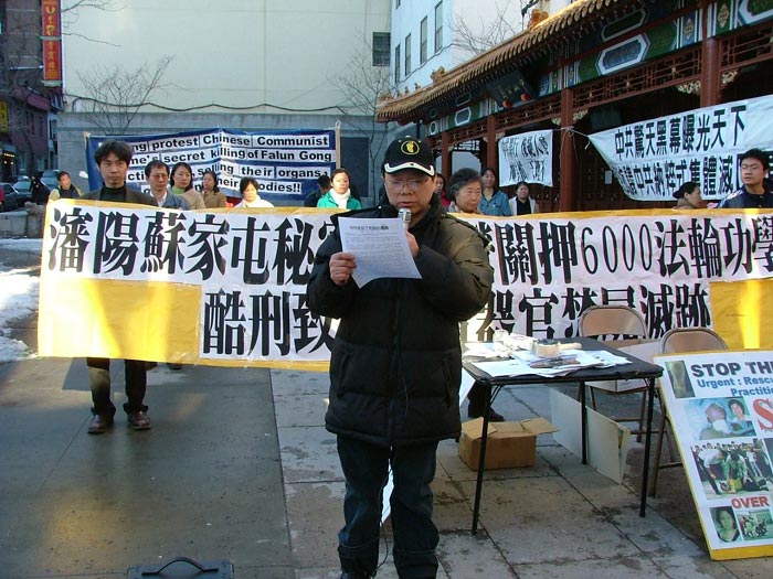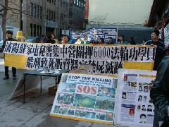 集会组织者向民众介绍说:据一位知情人士3月8日披露,中共在沈阳市苏家屯区设立了一个类似法西斯的秘密集中营,关押着6000多名法轮功学员。该秘密监狱里有“焚尸炉”,还有大量的医生。据悉,凡进到这里的人没有活着出来的,焚尸前内脏器官都被掏空出售。目前沈阳马三家和大北第二监狱的法轮功学员已经很少了,大部份都被转移到苏家屯。东北三省及中部地区的法轮功学员正被转移到那里。情况紧急,呼吁紧急救援。