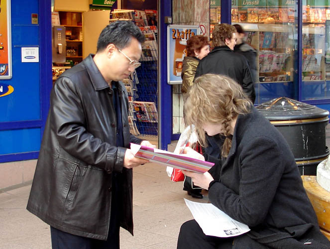 【明慧网2006年3月14日】2006年3月13日下午,挪威法轮功学员来到博德市市中心,绝食抗议中共在沈阳市苏家屯设立集中营大规模虐杀法轮功学员的暴行。学员们打开横幅,向路人散发揭露集中营内幕的真相资料,并征集呼吁制止