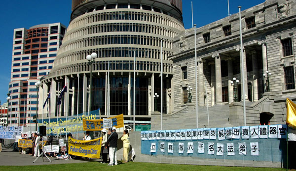 ![]() 新闻发布会在新西兰国会大厦前举行 |