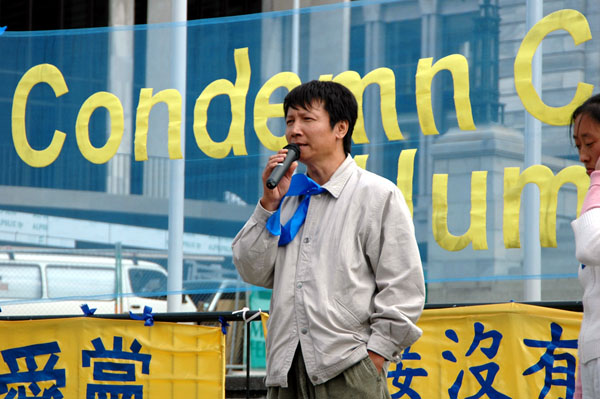 法轮功学员黄国华先生发言,用亲身经历揭露中共劳教所对法轮功学员的残酷迫害。