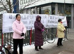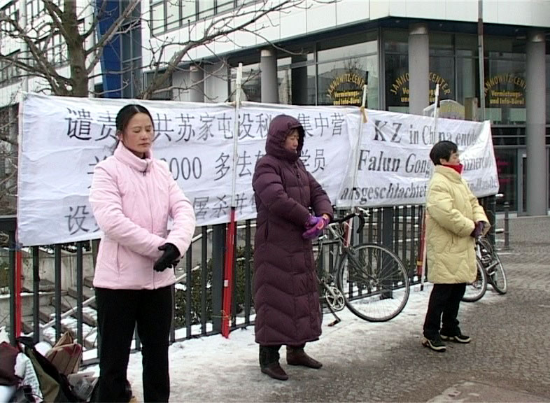 ![]() 柏林法轮功学员在中使馆前抗议苏家屯集中营残害法轮功学员并贩卖器官。 |