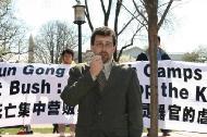 另外,在美国首都华盛顿的法轮功学员周四开始在白宫附近的公园进行四十八小时静坐抗议,要求美国政府向中共施压,调查有消息指在沈阳郊区的苏家屯有一个专门关押法轮功成员的秘密集中营的事件。发言人王涛对本台表示这次活动的目的是敦促美国政府向中共施压要求他们调查此宗骇人听闻的事件,同时希望美国政府和联合国一起进行一个国际调查。