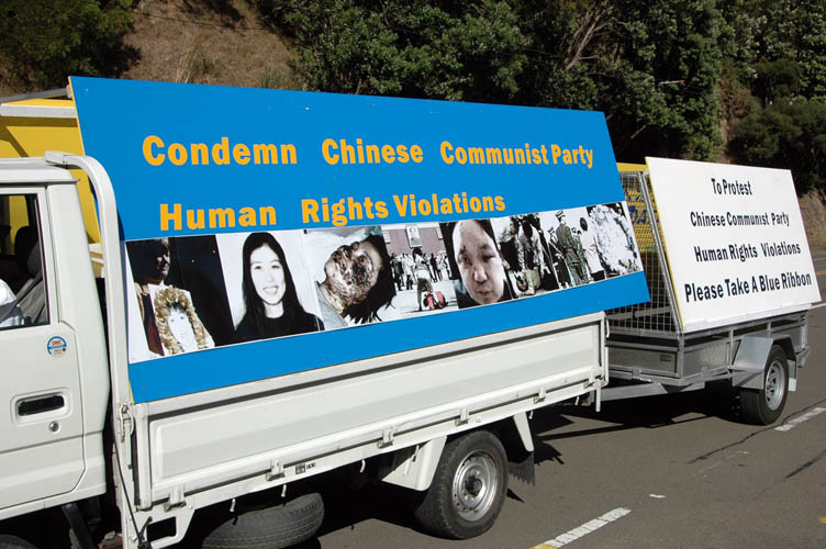 洛城游行法轮功展雄姿