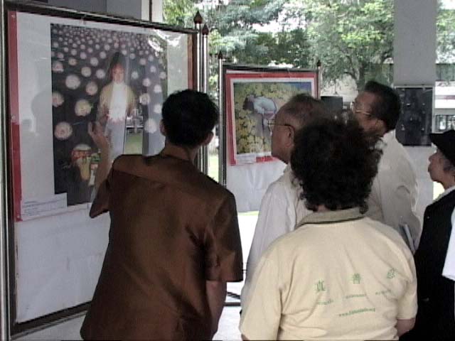 【明慧网2006年3月2日】2006年2月27日至3月1日,泰国法轮功学员在RAJAMANGALA技术学院,进行了三天洪法,举办真善忍画展。洪法期间,学员向参观者讲解每幅画的内容、法轮功真相,并演示功法。学员们表演的仙女舞、打腰鼓,吸引了不少人的目光。