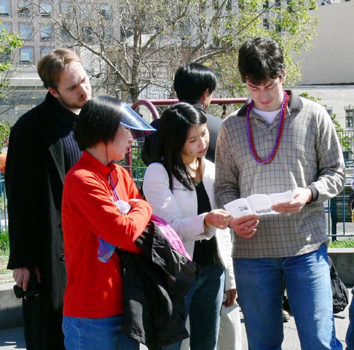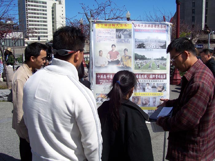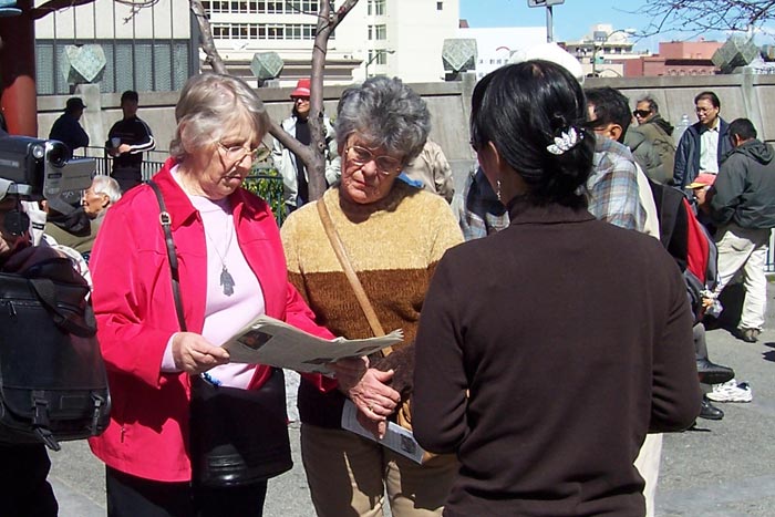 【明慧网2006年3月20日】(明慧记者黄凯莉、王英旧金山报导)3月18日中午,旧金山湾区法轮功学员和各界人士,在旧金山中国城花园角集会,同声谴责中共“苏家屯集中营”的群体灭绝罪行,并声援中国大陆九百万人退出中共。与会者表示要共同抗暴,终结迫害。
