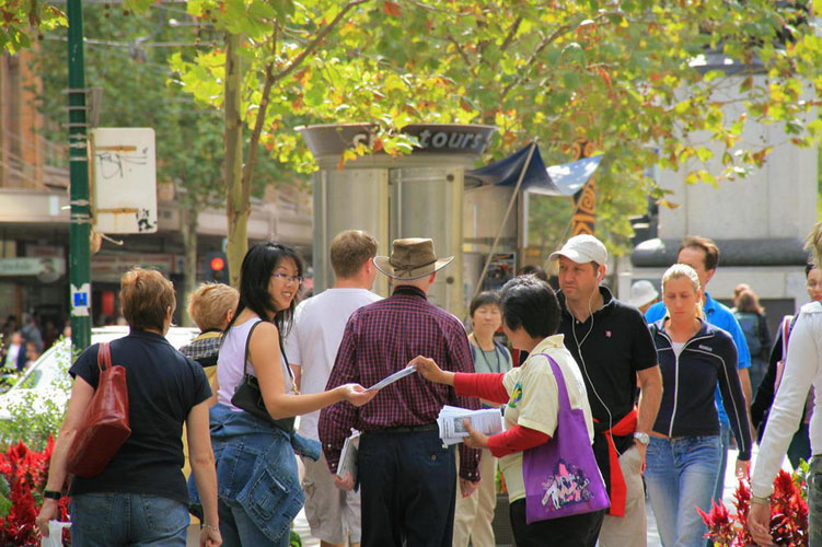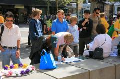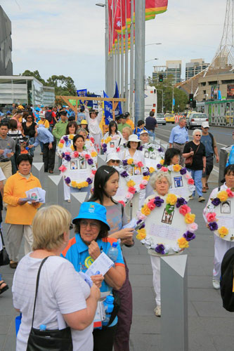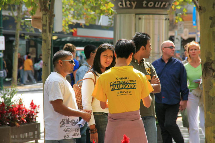 ![]() 向联邦运动会义工讲真相 | ![]() 游客向法轮功学员了解真相 |