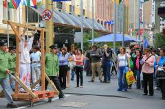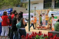 ![]() 真人演示酷刑展引起游人关注 | ![]() 游人纷纷接过传单了解真相 |