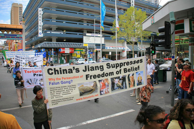 游行结束后,学员们在城市广场举行集会,谴责中共罪恶兽行。维省法轮大法学会负责人麦克尔·皮尔森、追查国际代表樊慧强,来自大陆的法轮功学员哈里以及澳洲维省前奥运游泳奖牌获得者、法轮功学员金·贝卡分别发言。