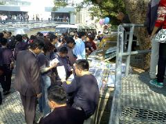 ,派发九评以及关于苏家屯集中营事件的资料。很多市民、游客看图片,索取真相资料,询问情况,表示对共产党暴政的愤恨,对法轮功及学员的同情和支持。有的人还竖起大拇指说:“法轮功真了不起!真伟大!你们真勇敢!我们支持你们!”临离开时,特别要与学员握手,并真诚的嘱咐:请保重!你们一定胜利!