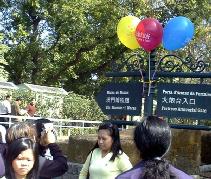“法轮大法好”气球悬挂在旅游景点入口