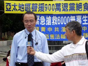 活动连络人陈先生表示:从《九评共产党》这本书在社会上传开以后,彻底揭露中共的邪恶本质,到现在已经引发九百万人退出共产党,历史上这个邪恶政权至少造成八千万中国人非正常死亡,在历次政治运动中更是明目张胆的虐杀,尤其对法轮功学员的迫害无所不用其极。最近其内部人员因不堪良心的煎熬,揭露的沈阳苏家屯集中营杀害法轮功学员取器官后焚尸灭迹的事件,更证明中共逞凶已经到了疯狂的地步。目前全世界的法轮功学员以及正义人士都在持续这个静坐抗暴的活动,目地是要唤醒世人认清中共,呼吁国际社会立即调查和制止中共虐杀行为,紧急救援仍面临危险的无辜生命。