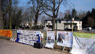 2006年3月20日,比利时法轮功学员在布鲁塞尔中使馆前抗议中共设立苏家屯秘密集中营活体摘取法轮功学员器官牟利的暴行,并强烈呼吁比利时政府、欧盟关注和调查苏家屯集中营的罪行,制止中共非人性的迫害。
