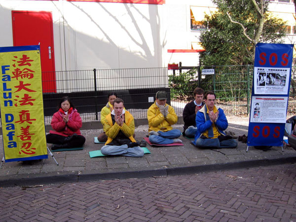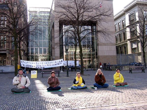 ![]() 荷兰议会大楼前曝光苏家屯集中营暴行 | ![]() 荷兰议会大楼前签名声援诉江案的人们 |