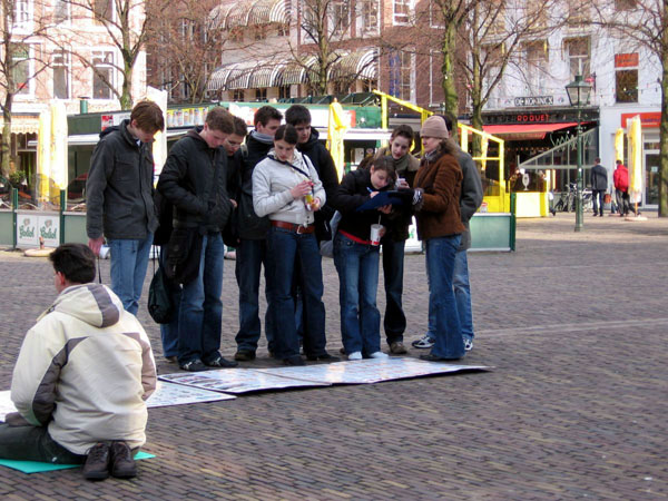 一群年轻人了解了中共在苏家屯的暴行后,纷纷在声援荷兰法轮功学员起诉迫害元凶江××的请愿信上签名。有一位年轻的律师,非常诚挚的表示让法轮功学员找她,如果她能帮得上忙的话。她留下了联络方式。很多的人们收到了法轮功学员被残酷迫害的真相资料。