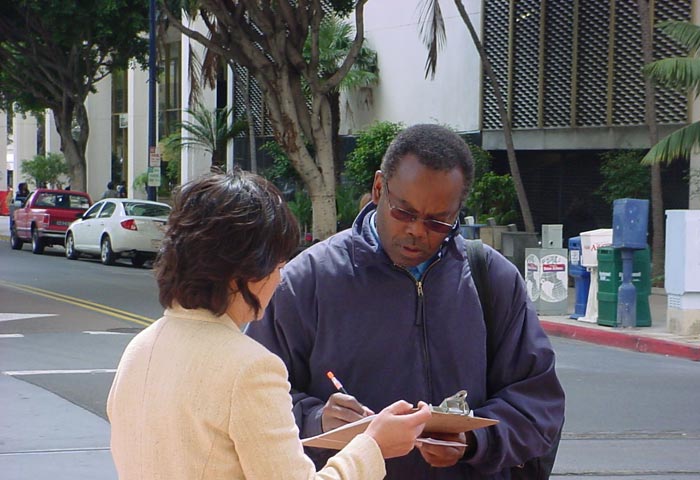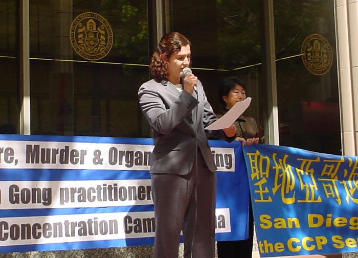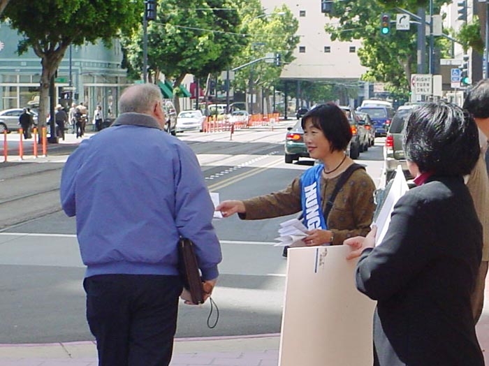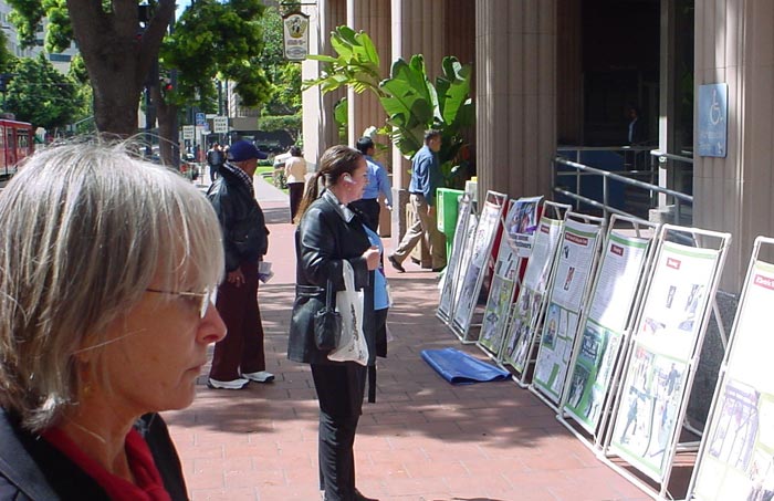 圣地亚哥当地电视台第十频道(Channel 10)记者参加了新闻发布会。发布会结束以后,圣地亚哥市长杰瑞•桑德斯先生(Jerry Sanders)恰巧路过,学员递给他一张传单,简单介绍了一下苏家屯集中营的情况。桑德斯市长欣然接受了传单,并听取了学员的讲述。过往的民众了解到中共在苏家屯的暴行,都表示震惊。人们纷纷签名,呼吁国际社会迅速调查苏家屯集中营真相,营救那里的法轮功学员。