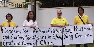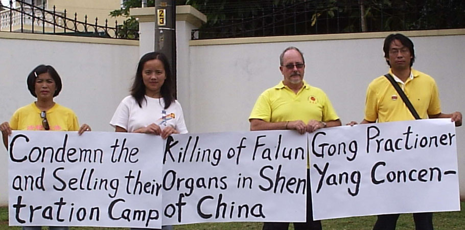 【明慧网2006年3月25日】惊闻中共苏家屯集中营秘密杀害法轮功学员,并活体盗取法轮功学员器官随后焚尸灭迹的兽行,南非德班法轮功学员2006年3月20日在中共驻德班领事馆前强烈抗议中共惨绝人寰的暴行。