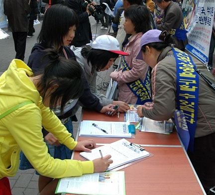 韩国各地法轮功学员将苏家屯事件大量曝光后,再次掀起了营救法轮功学员并制止中共迫害的征集签名运动。这是继韩国民众成功营救法轮功学员高成女后兴起的又一次大规模全国性征签活动。